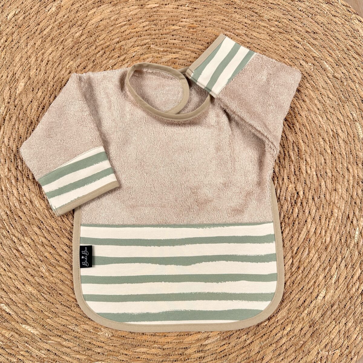 Ce Bavoir à Longues manches est idéal pour garder les vêtement propres et vos petits bouts à l’aise lors de vos repas en famille!
